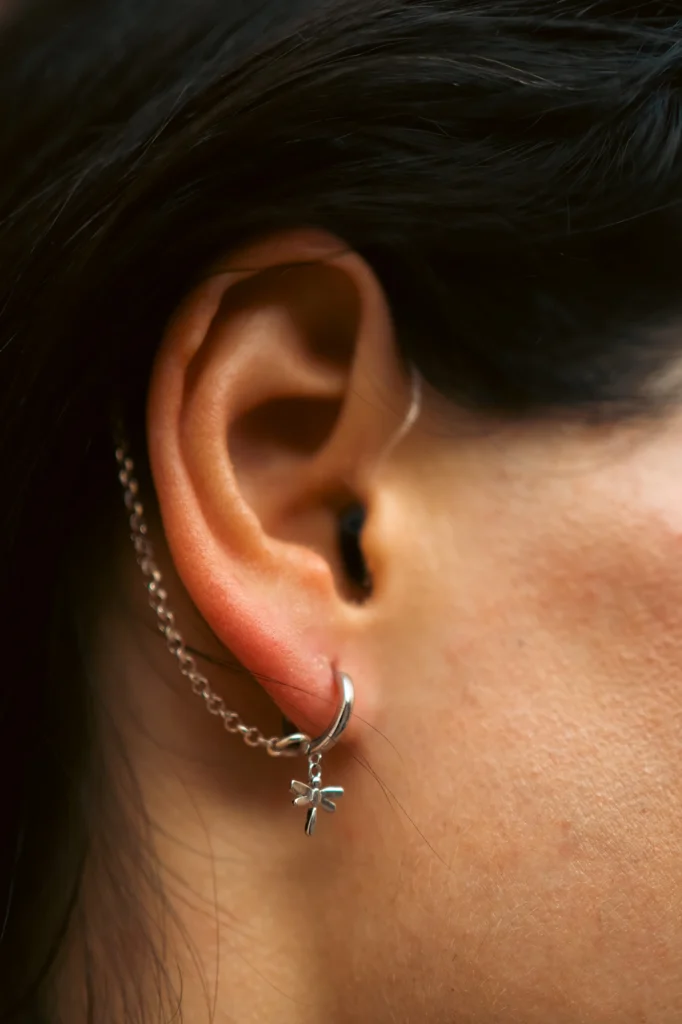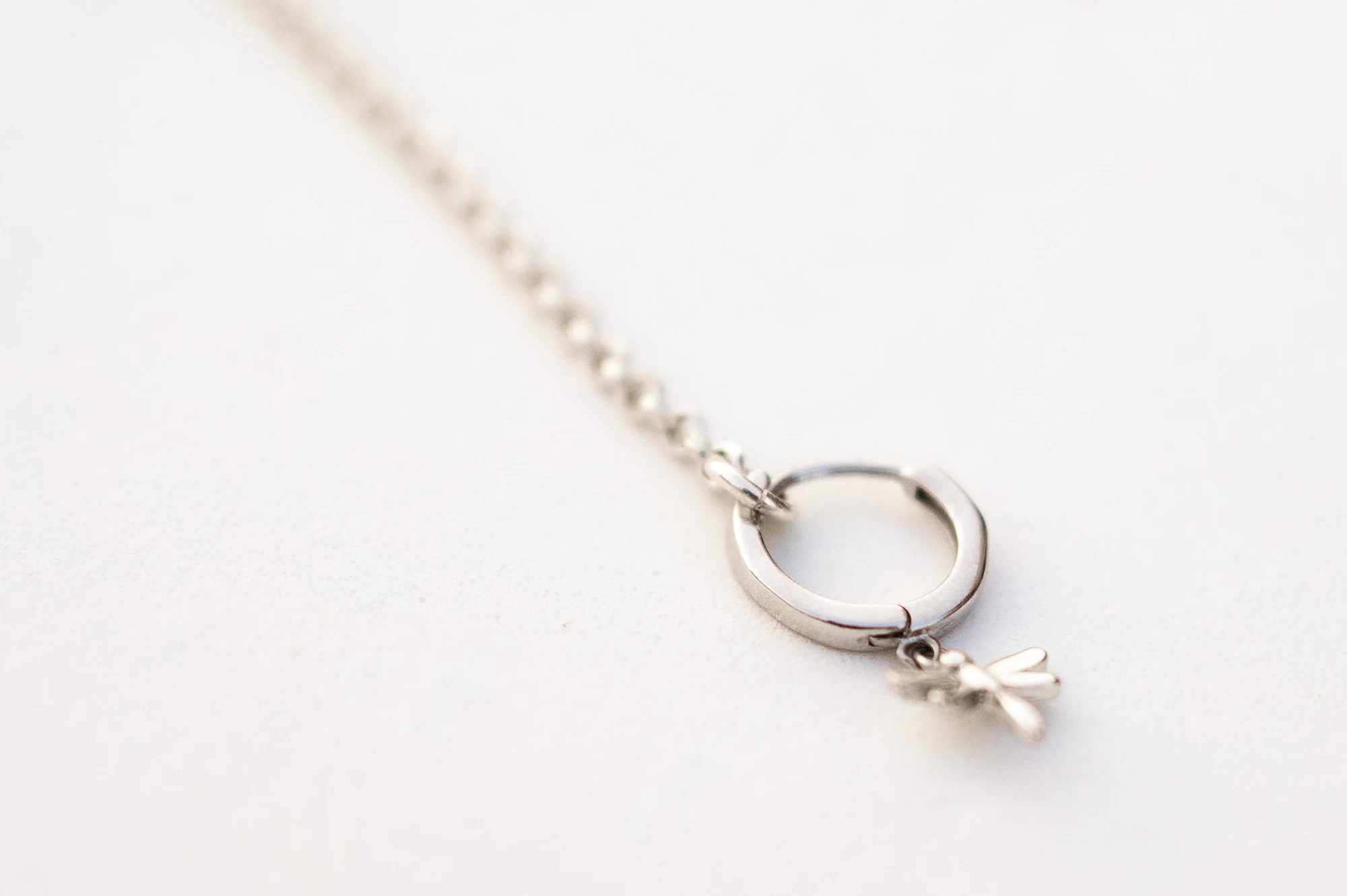 – Pendiente aro con charm de libélula más cadena en plata de ley 925
