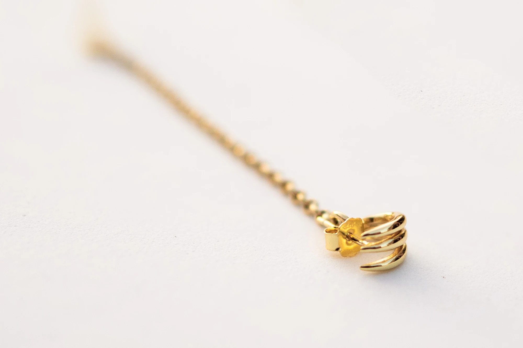 – Pendiente de garra más cadena en plata de ley bañado en oro 14 quilates